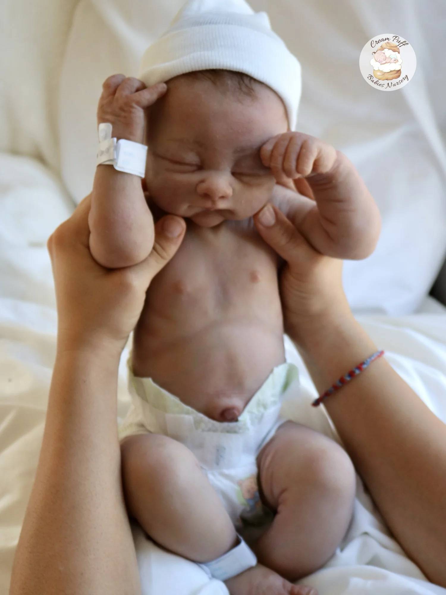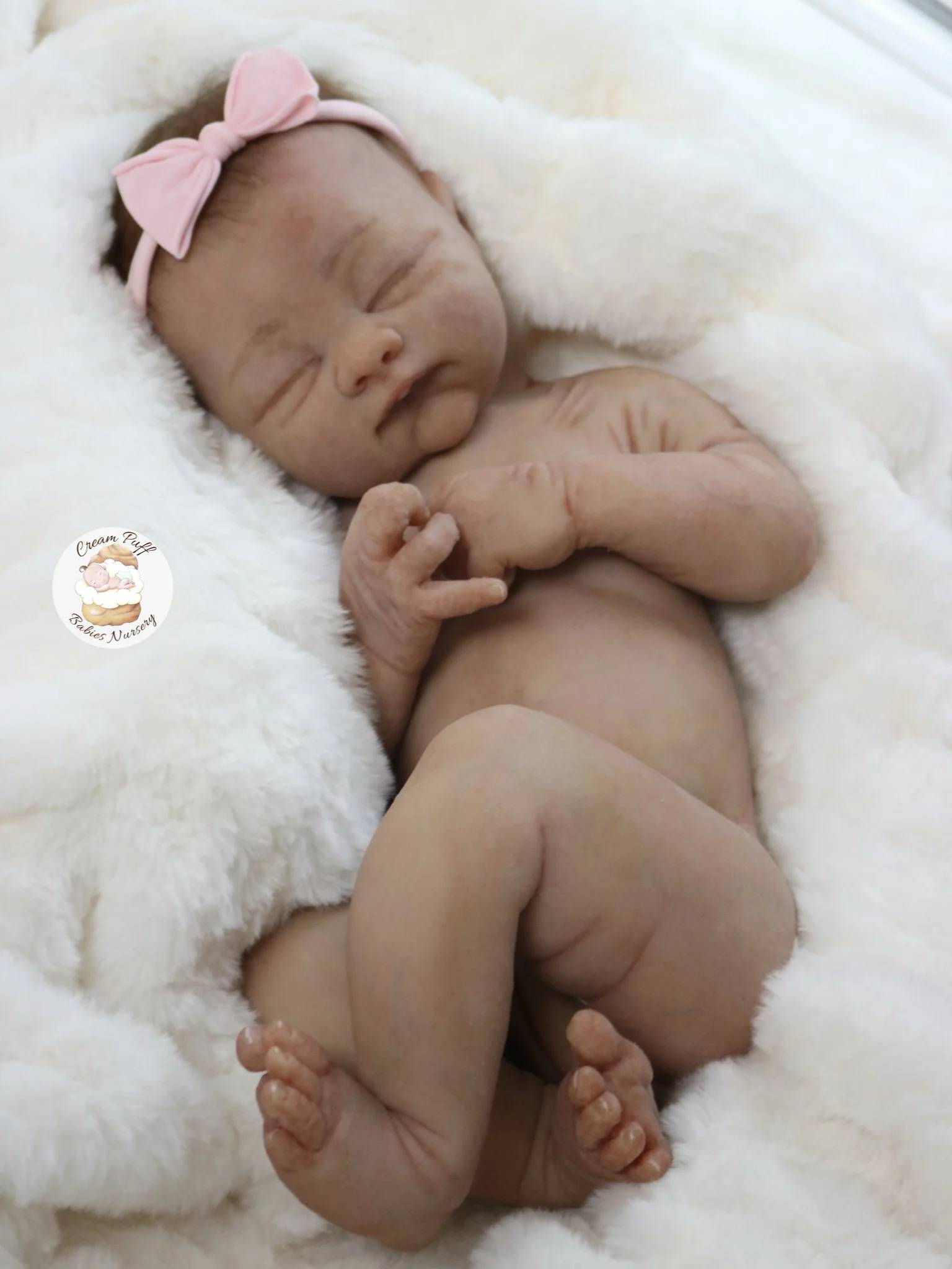 This is our newest lil darling! Tempest, a breathtakingly lifelike full-body silicone baby girl sculpted by the renowned artist Tasha Edenholm. She weighs 7 pounds 6 ounces and measures 20 inches long. Tempest feels every bit as real as a freshly swaddled newborn resting in your arms. 🥰